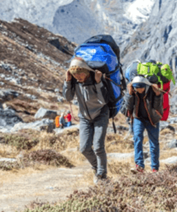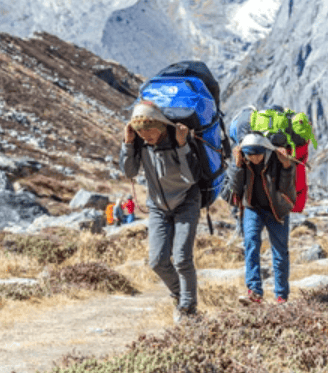 Porters help carry your equipment from the village to our base camp, where our highly skilled Sherpas carry the equipment up the mountain, providing their expertise in the local area